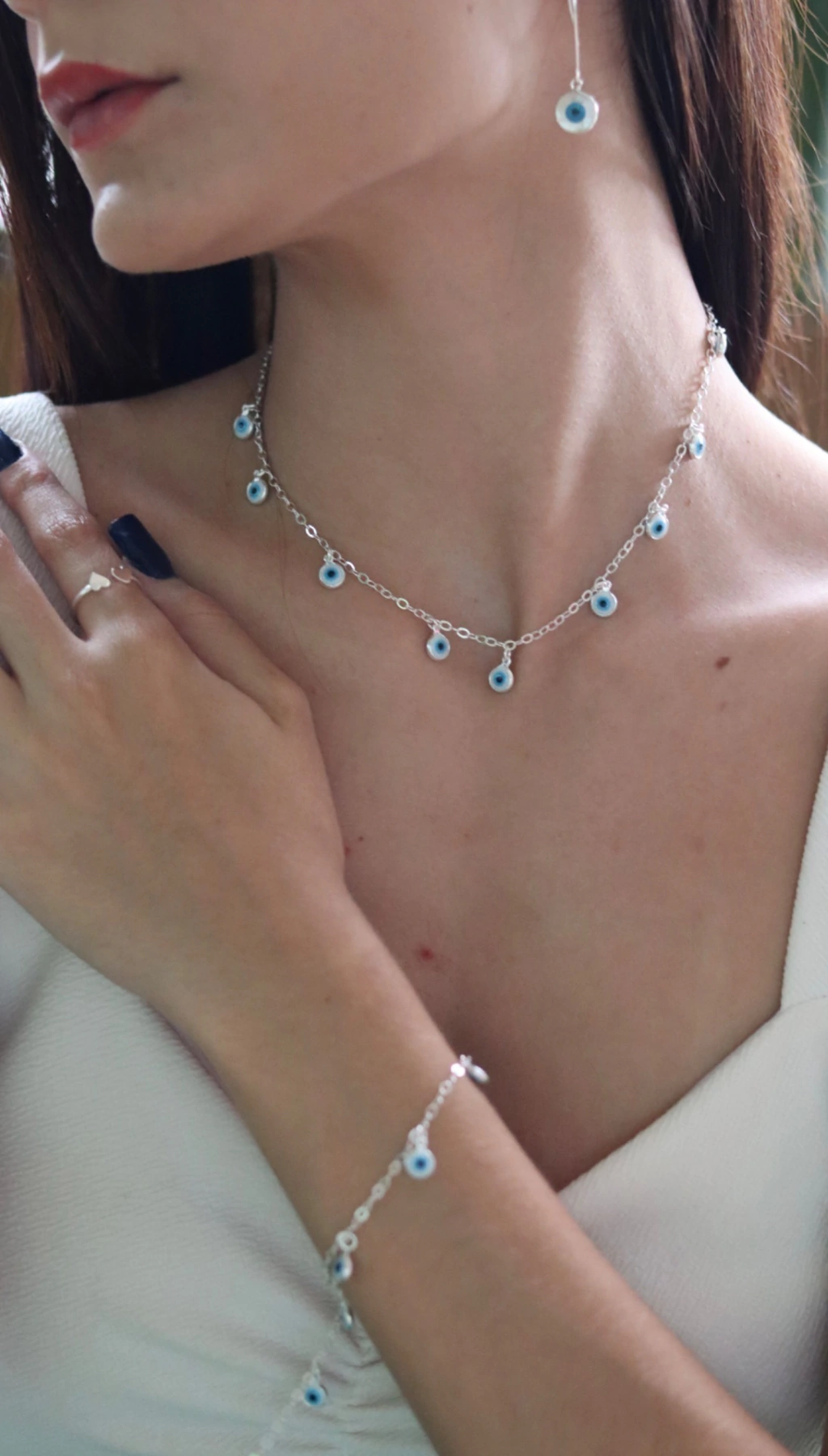 Conjunto feminino modelo Olho Grego fabricada em prata de Lei 925 com Pedras em Zircônio.